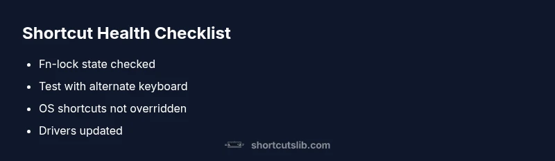 This section outlines a practical, step-by-step flow to diagnose shortcut key issues quickly. Start with the simplest test: is Fn-lock engaged? Then test a second keyboard. If shortcuts still fail, update or reinstall keyboard drivers, and test in another user account to rule out profile corruption. If none of these steps restore behavior, consider a system reset or hardware replacement. As always, back up your data before major changes.