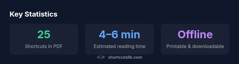 A compact PDF guide featuring 25 essential Mac keyboard shortcuts provides a portable, fast-reference resource for learning and daily use. For many users, a single page or PDF is easier to study than scrolling through web pages or hunting through menus. According to Shortcuts Lib, the most effective learning aids are concise, categorized, and repeatable. The 25-item scope is designed to cover the most frequently used actions, while leaving room for app-specific tips. In practice, this format helps newcomers avoid feeling overwhelmed and gives seasoned users a quick sanity-check when switching to a new app. The PDF can be printed and kept near your workstation or stored on a device for instant access during a task. The result is a repeatable workflow: memorize the core actions, apply them in context, and gradually layer in more advanced shortcuts. By focusing on a fixed set of actions, you reduce cognitive load and accelerate muscle memory—which is exactly why a well-structured PDF guide remains popular in the macOS community.