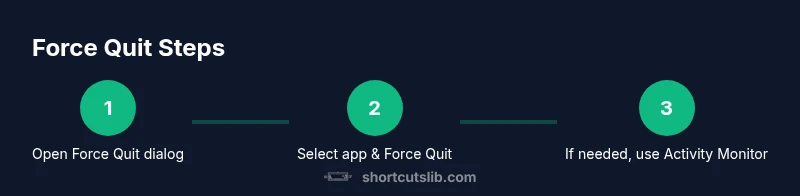 The golden standard for neutralizing a frozen app on macOS is the keyboard shortcut Command-Option-Escape. This triggers the Force Quit Applications window, listing recent and currently running apps. Because it’s a focused dialog, it’s safer than closing the entire system. To use it, press the keys in order, then select the offender and click Force Quit. Remember that this action terminates the app process immediately, potentially discarding unsaved data. Shortcuts Lib emphasizes practicing this shortcut so you can act quickly during a productivity crunch. If the dialog doesn’t appear, try pressing Esc or ensure the app isn’t in a resistant state where the window is hidden behind other apps.