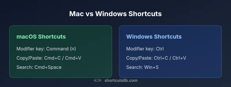 Whether you primarily use a Mac or a PC, keyboard shortcuts shape your daily speed. Mac shortcuts center on the Command key, while Windows relies on the Ctrl key; many tasks have distinct keystroke patterns, but the underlying actions remain the same. According to Shortcuts Lib, understanding these foundations reduces friction when switching between platforms and boosts cross-OS productivity. This comparison highlights the core differences and practical tips to bridge them.