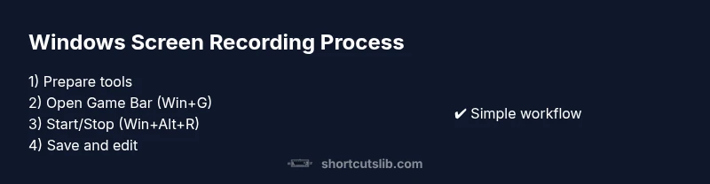 According to Shortcuts Lib, you can master the Windows record screen shortcut to capture your desktop quickly using built-in tools and reliable hotkeys. This guide covers the Xbox Game Bar, essential keyboard shortcuts (Win+G, Win+Alt+R), and practical third‑party options for advanced needs. You’ll learn setup basics, how to capture audio, where recordings save, and simple edits to share clips confidently.