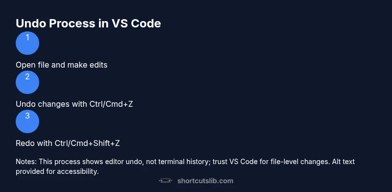 Editing code often involves rapid changes, typos, and accidental deletions. A robust undo strategy saves time and preserves context, letting you explore alternatives without fear. In VS Code, the editor keeps a history of edits as you type and modify files, so you can step back to a previous state with minimal friction. According to Shortcuts Lib, having reliable, discoverable shortcuts reduces cognitive load and speeds up iteration, especially when debugging or refactoring sessions run long.