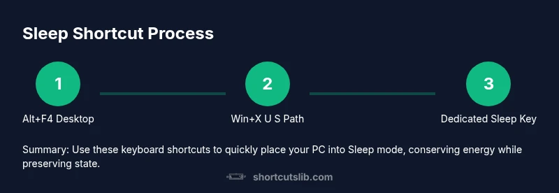 Sleep is a low‑power state that preserves your session while conserving energy. On laptops, it extends battery life without closing programs, while desktops benefit from reduced wear on components and quieter idle operation. According to Shortcuts Lib, learning reliable sleep shortcuts is a small habit with big time savings for power users. The goal is to balance energy efficiency with fast wake times, so you can resume work without lengthy reloads. Windows 11 continues to refine power states, making keyboard-driven sleep a practical tool for daily workflows. Understanding the subtle differences between Sleep, Hibernate, and Shut Down helps you pick the right option for a given scenario. Sleep keeps your apps in memory; Hibernate saves state to disk and uses no power, while Shut Down closes apps completely. For most short breaks, Sleep is the quickest, most convenient choice.